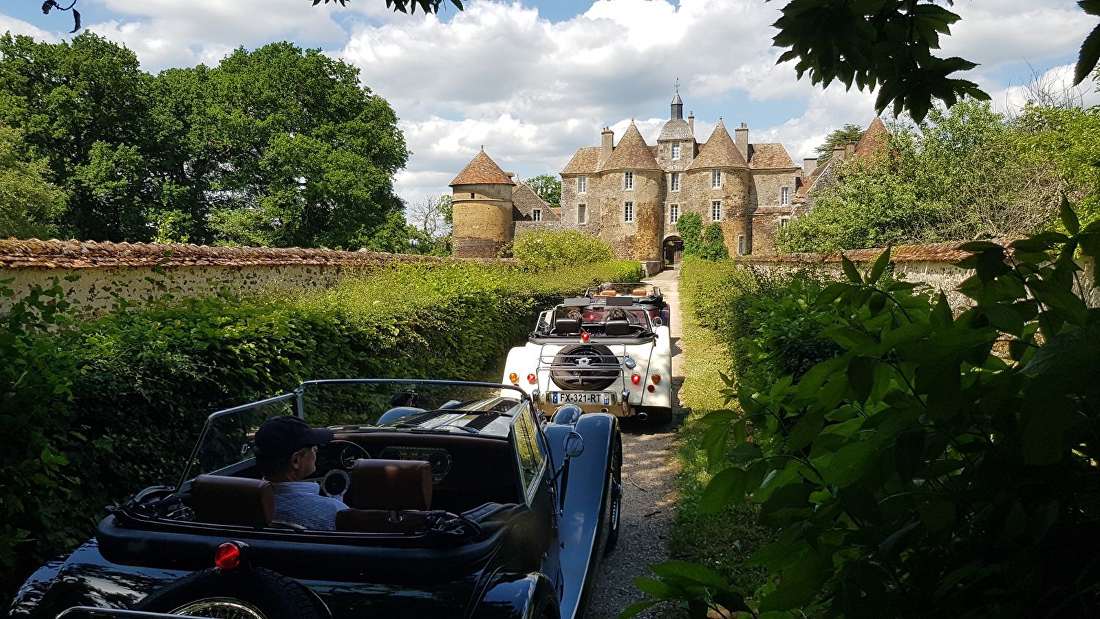 Conduisez une Morgan, mise à disposition par Bourgogne Aventure, dans les roues de votre guide pour explorer la Bourgogne.
